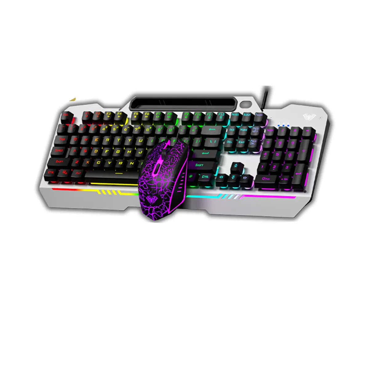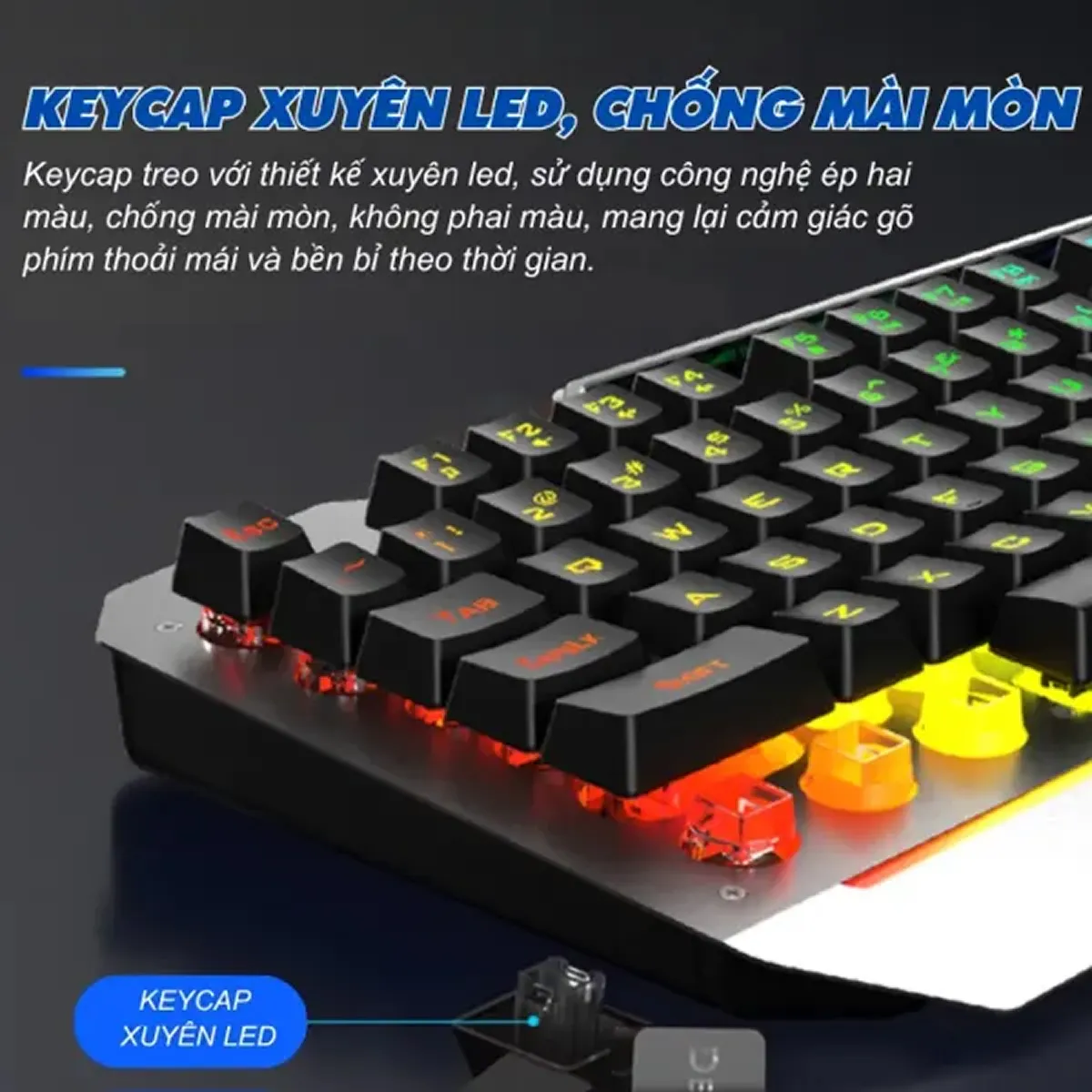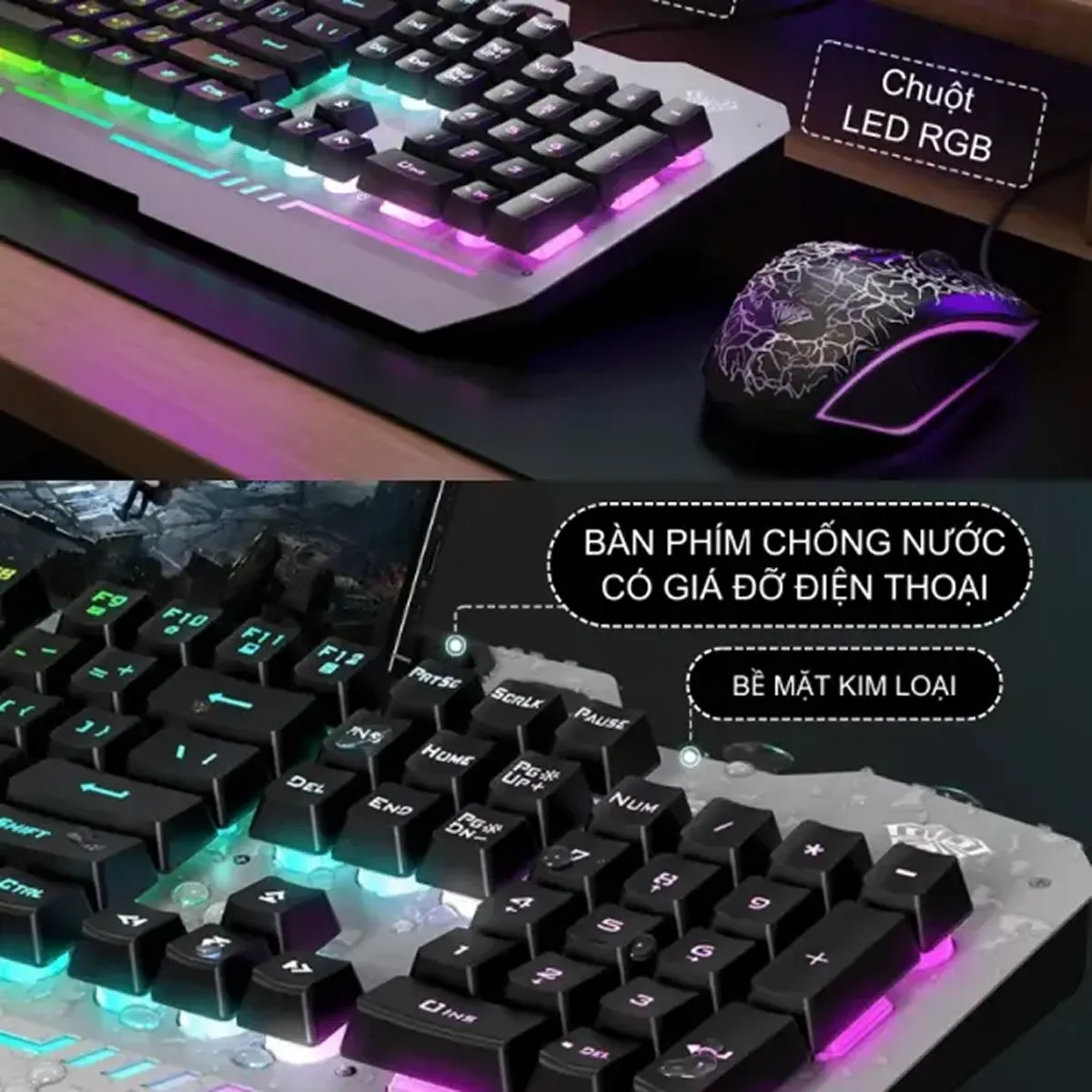 Giảm 500K khi thanh toán bằng thẻ tín dụng HDBankAula T102 là combo bàn phím và chuột có thiết kế LED sống động, bàn phím full-size và chuột có DPI tùy chỉnh lên đến 7200, mang lại sự linh hoạt. Combo này có kết nối bằng cổng USB, dễ dàng sử dụng ngay khi cắm vào máy. Ngoài ra, bàn phím còn được tích hợp giá đỡ điện thoại tiện lợi.