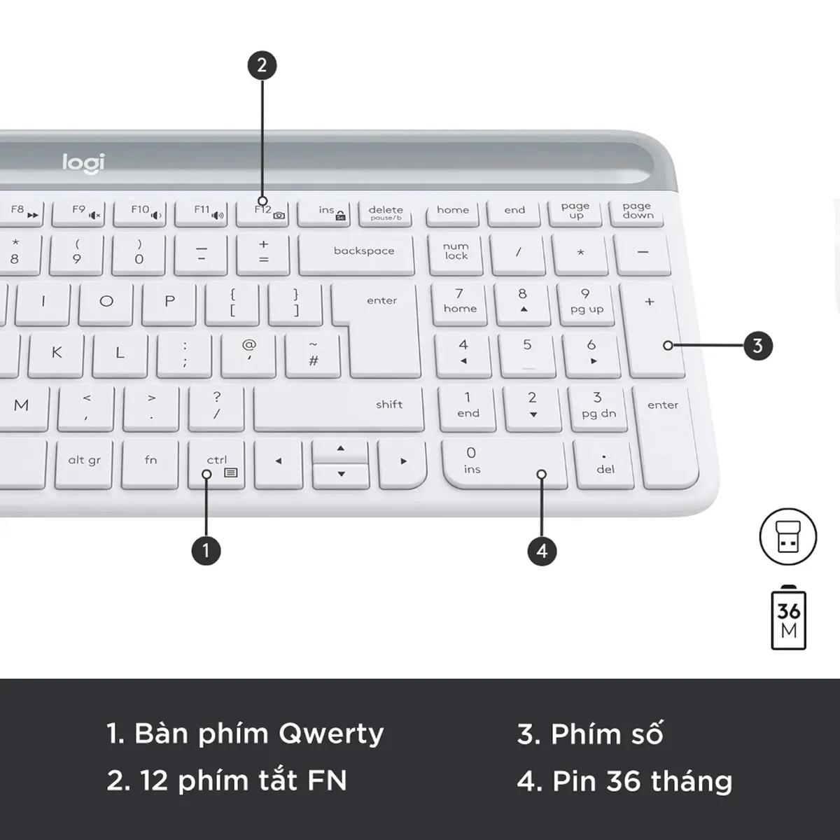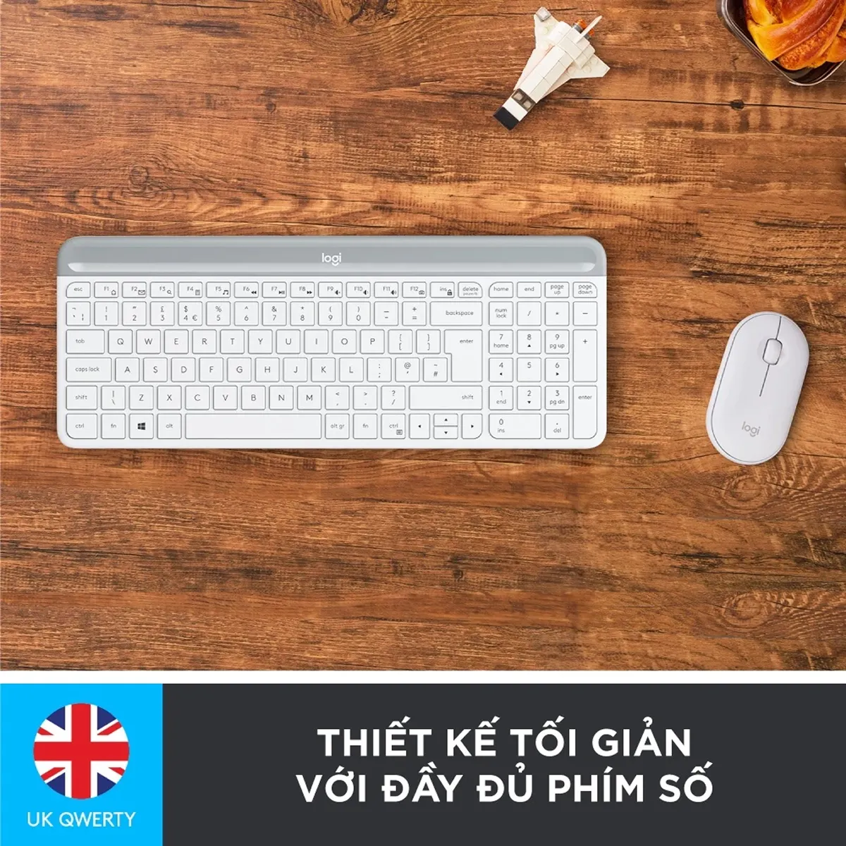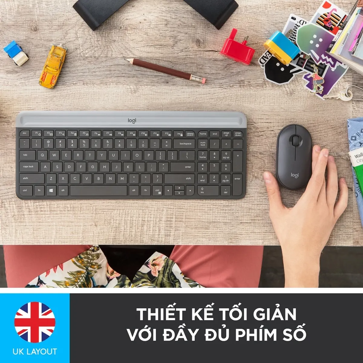 Layout bàn phím bao gồm dãy bàn phím số, chữ và 12 phím tắt FN thiết yếu. Chuột Logi này được thiết kế với form nhỏ gọn cùng trọng lượng nhẹ để bạn dễ dàng mang theo bất cứ đâu. Kích thước này của bộ sản phẩm cho phép bạn có thể sắp xếp và làm việc ở những không gian có diện tích khiêm tốn nhất.