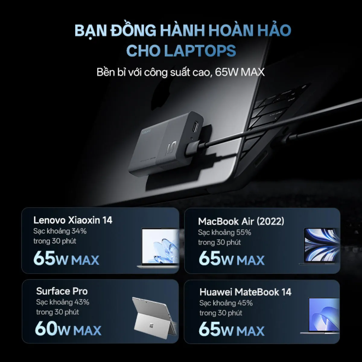 | Công suất sạc | 65W MAX |