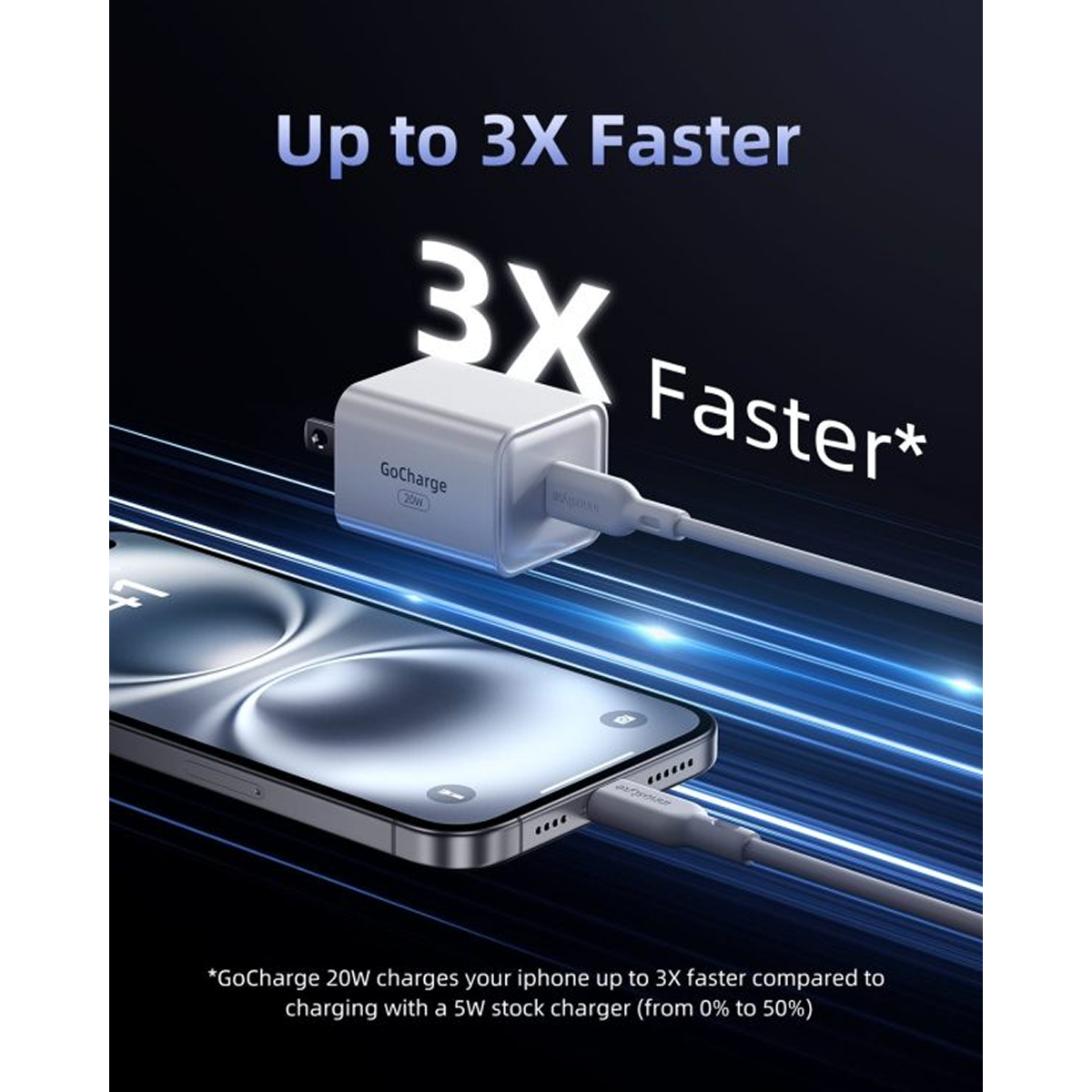 Khả năng sạc nhanh hơn 3X cho iPhone so với sạc 5W (từ 0% đến 50%)