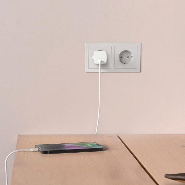 Với khả năng sạc nhanh từ 0–50% chỉ trong 30 phút cho iPhone 8 trở lên, củ sạc kết hợp giữa hiệu suất mạnh mẽ và sự tiện lợi. Thiết kế nhỏ gọn cùng tốc độ sạc cao giúp việc nạp pin cho thiết bị trở nên nhanh chóng và dễ dàng.
