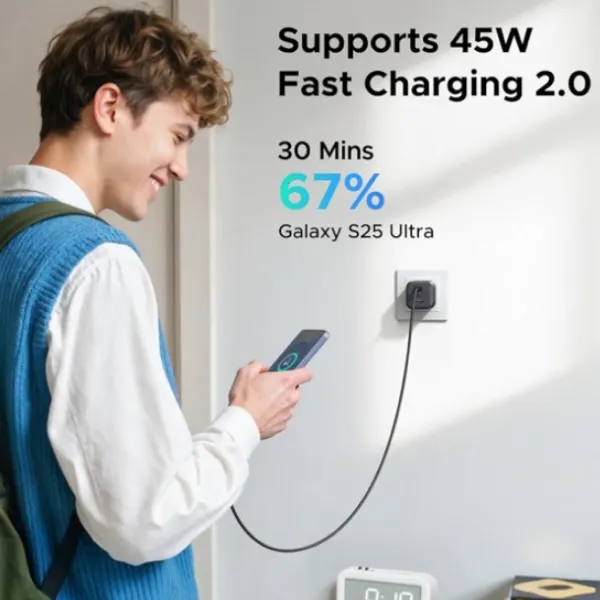 Công suất sạc củ sạc Ugreen GaN 45W US X527 65155BCông suất 45W giúp tối ưu thời gian sạc pin