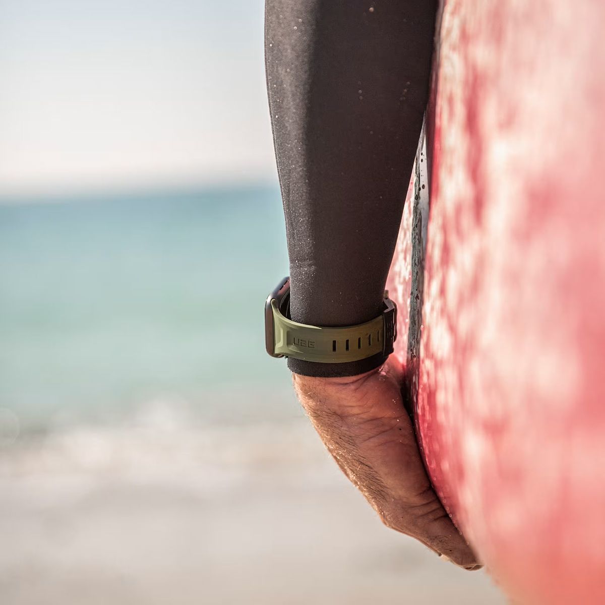UAG Scout nổi bật với độ mỏng nhẹ cùng thiết kế vân rãnh mặt trong, giúp tăng độ bám và tạo cảm giác thoải mái suốt cả ngày. Cơ chế khóa gài thép không gỉ rất tinh tế, hoàn thiện vẻ ngoài tối giản nhưng vẫn chắc chắn cho mẫu dây đeo đồng hồ này.