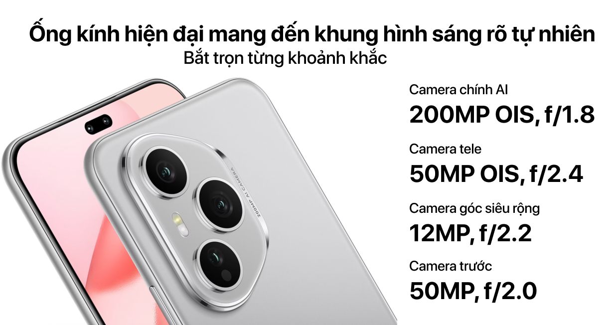 Điểm nhấn đặc biệt trên chiếc smartphone này là cụm camera sau AI 200MP, cho ra những bức ảnh sắc nét đến từng chi tiết nhờ hỗ trợ OIS lẫn EIS và mô hình AI RAW Large Model. Ngoài ra, hệ thống còn đi kèm camera tele 50MP hỗ trợ OIS và camera góc siêu rộng 12MP, mang đến khả năng zoom số 50x ấn tượng và khung hình toàn cảnh sống động.
