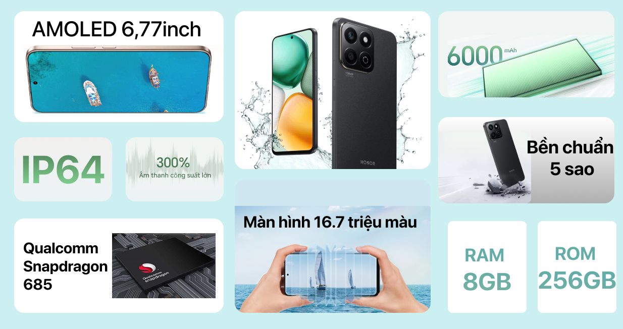 Honor X7c không chỉ dừng lại ở thiết kế cân đối mà còn gây ấn tượng nhờ loạt tính năng hữu ích. Đây là dòng điện thoại Honor tầm trung nhưng đáp ứng trọn vẹn nhu cầu từ học tập, làm việc đến giải trí.