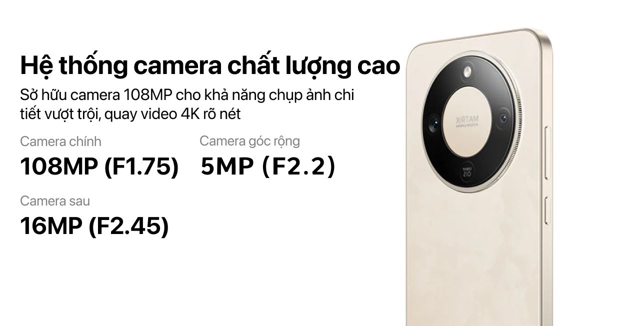 Camera chính 108MP (F1.75) + Camera góc rộng 5MP (F2.2)