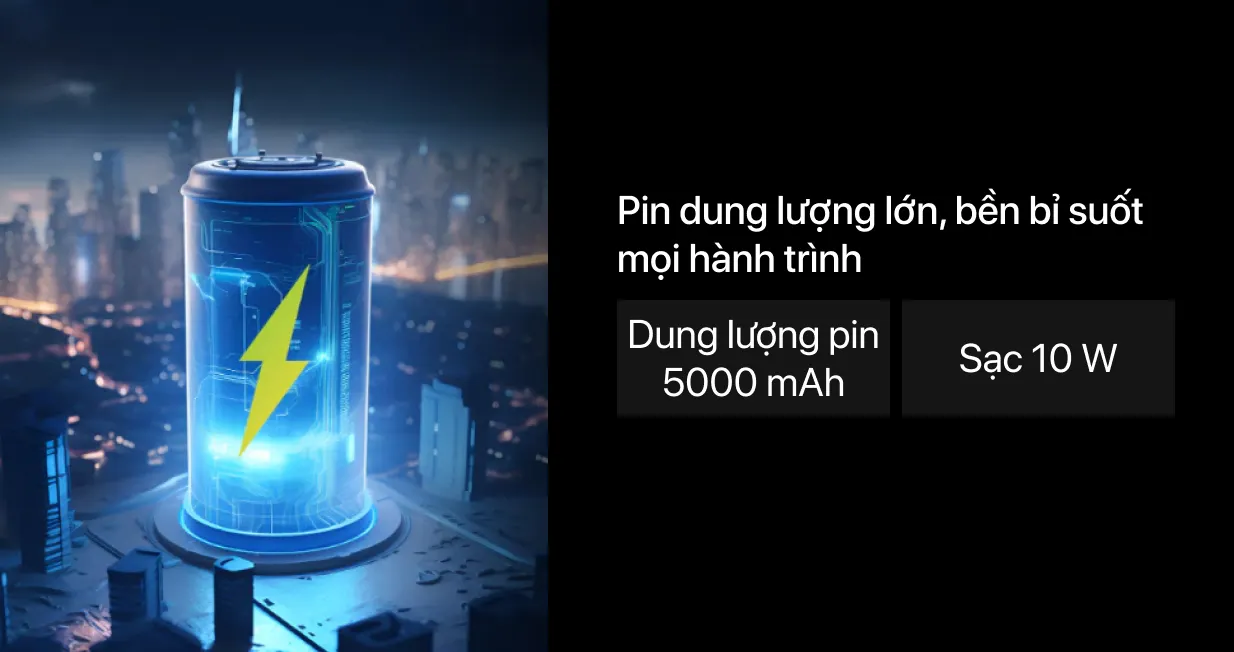Pin 5000 mAh cùng công nghệ bảo vệ thông minh: Mang lại thời gian sử dụng vượt trội