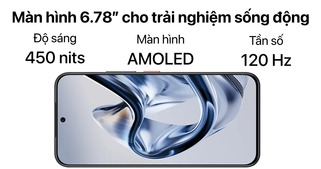 Điện thoại Nubia Air 5G sở hữu màn hình AMOLED 6.78 inch với độ phân giải 1.5K, mang đến hình ảnh sắc nét và màu sắc sống động. Nhờ độ sáng cao 4500 nits, trải nghiệm hiển thị ngoài trời trở nên rõ ràng hơn.