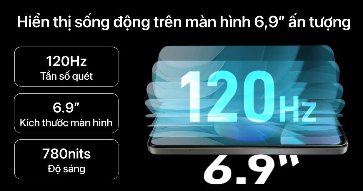 Điện thoại nubia V80 Max sở hữu màn hình 6.9 inch ấn tượng cùng tần số quét 120 Hz giúp người dùng tận hưởng hình ảnh mượt mà và sắc nét khi giải trí. Thiết bị vận hành ổn định nhờ chip Unisoc T7250. Kèm theo đó là dung lượng RAM 8 GB và 256 GB ROM, cải thiện khả năng đa nhiệm và lưu trữ dữ liệu trên máy.