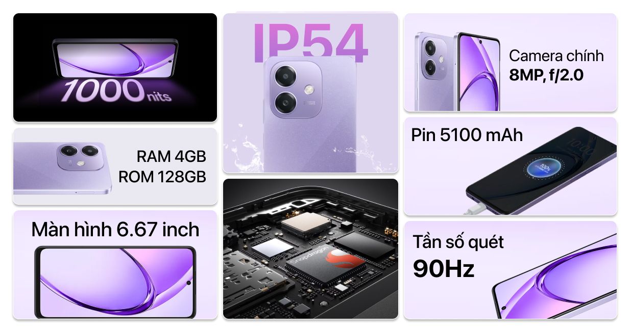 Không chỉ có dung lượng cao, dòng A5i còn hỗ trợ công nghệ sạc nhanh 45W SuperVOOC. Nhờ đó, người dùng có thể sạc đầy nhanh chóng mà không lo lắng về tuổi thọ pin, nhờ hệ thống bảo vệ và nhận diện phụ kiện thông minh.
