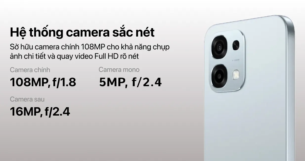 50MP (Chính, f/1.8) + 2MP (Mono, f/2.4), có đèn flash