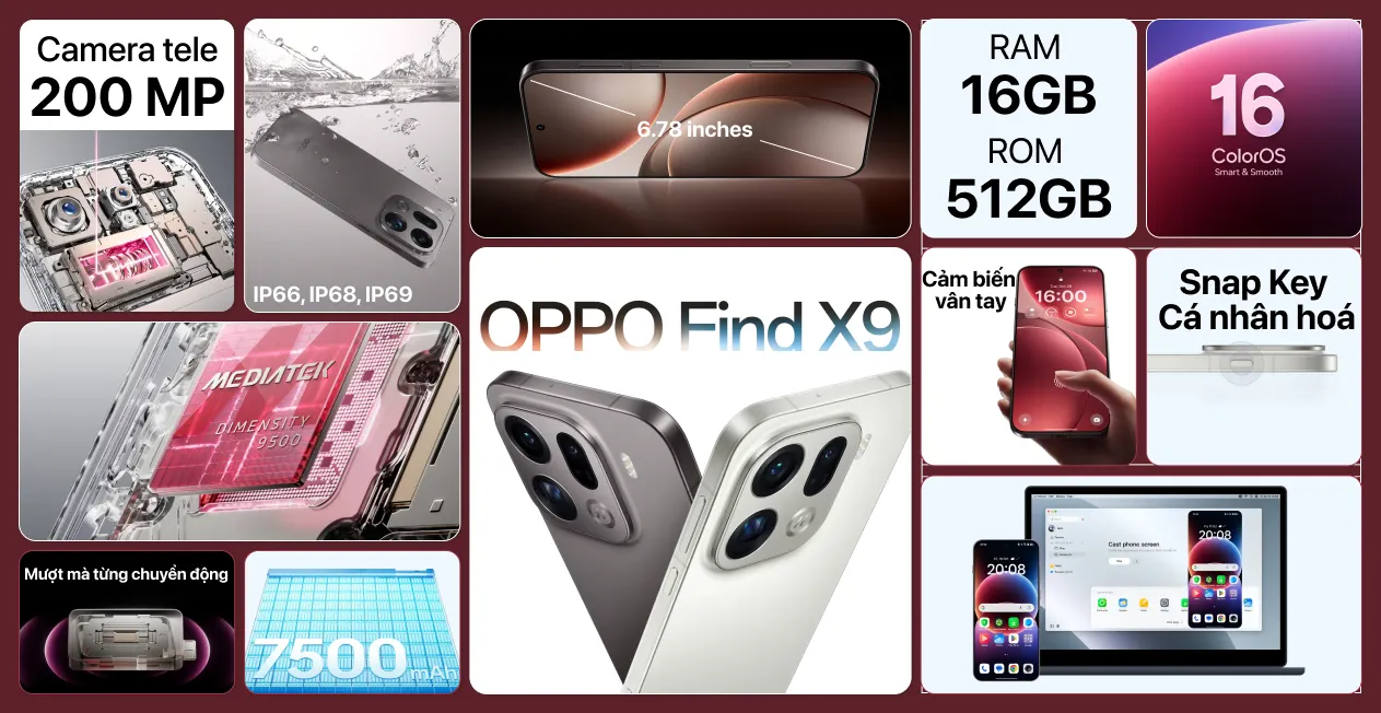 Điện thoại OPPO Find X9 Pro và phiên bản OPPO Find X9 đã ra mắt vào tháng 10/2025 tại Trung Quốc và theo lịch vào ngày 28/10/2025 tại thị trường toàn cầu (trong đó có Việt Nam). Chiếc điện thoại này có ngoại hình cùng loạt tính năng đặc sắc, nhận nhiều chú ý từ cộng đồng công nghệ. Thiết bị sẽ trở thành điểm nhấn lớn nhờ cấu hình mạnh mẽ và thiết kế mới mẻ.