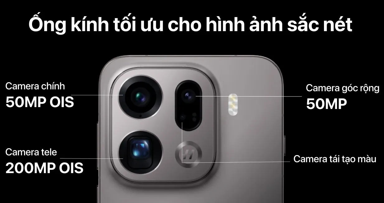 50MP OIS (Chính) + 200MP OIS (Tele) + 50MP (Góc rộng) + 2MP (Mono)