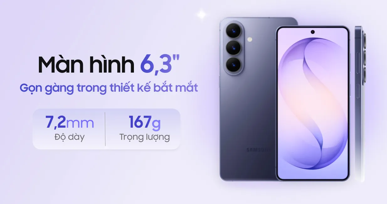 Đánh giá về ngoại hình, mẫu smartphone Samsung Galaxy S26 12GB 512GB sở hữu kích thước 71,7 x 149,6 x 7,2mm và trọng lượng 167g. Nhờ đó, các thao tác cầm nắm bằng một tay luôn diễn ra rất thoải mái.
