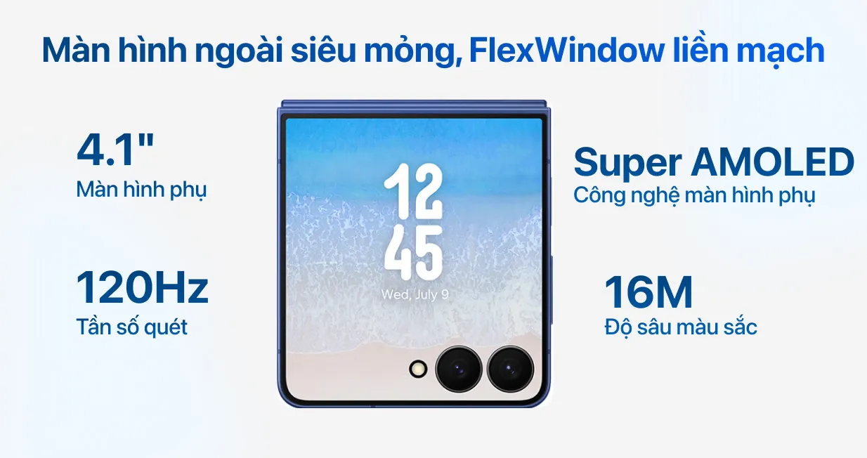 Samsung Galaxy Z Flip 7 với nhiều nâng cấp về cấu hình mang tới cho người dùng trải nghiệm sử dụng thường ngày tốt hơn. Màn hình phụ được nâng kích thước, giúp người dùng truy cập nhanh các tính năng mà không cần mở máy.