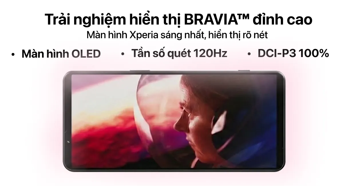 Sony Xperia 1 VII được trang bị màn hình OLED 6.5 inch độ phân giải FHD+ HDR (1080 x 2340) với tỷ lệ 19.5:9. Bên cạnh đó, máy còn sử dụng tấm nền LTPO với tần số quét 120Hz cho phép hiển thị mượt mà. Đây là màn hình sáng nhất trên dòng Xperia nhờ cảm biến trước và sau cùng tính năng Sunlight Vision.