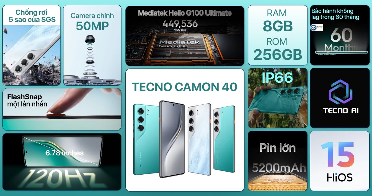 TECNO CAMON 40 8GB 256GB - Cũ trầy xước