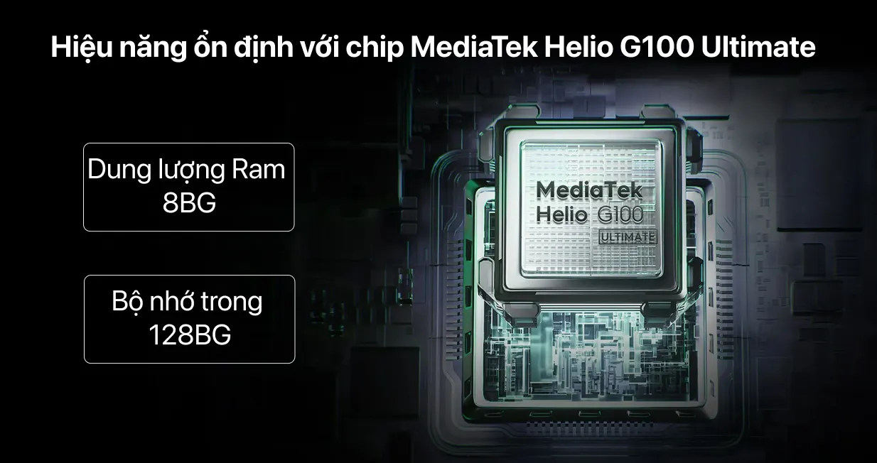 CPU MediaTek cao cấp cùng bộ nhớ trong và RAM ổn định