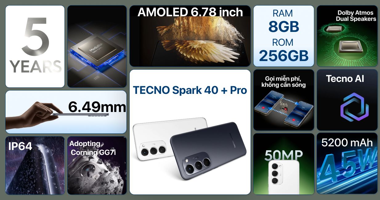 TECNO Spark 40 Pro+ 8GB 256GB - Cũ trầy xước