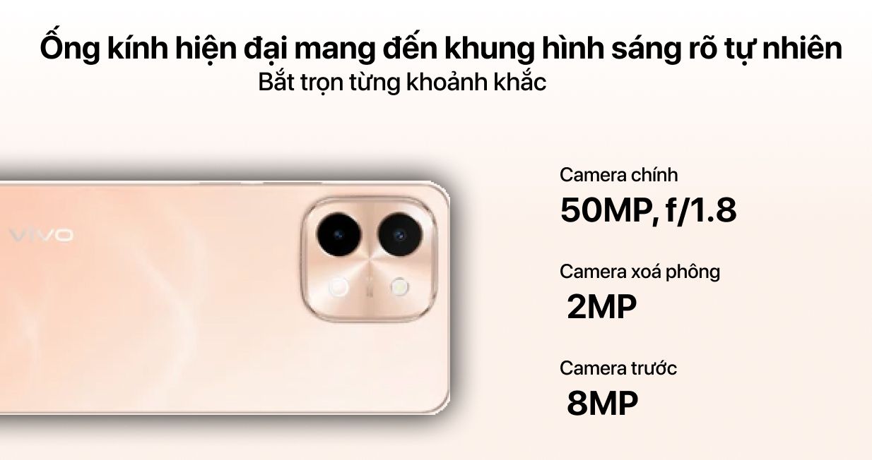 Dù thuộc phân khúc giá rẻ nhưng điện thoại vivo Y28 lại được đầu tư rất nhiều về khả năng quay, chụp. Camera chính của điện thoại có độ phân giải 50MP để có thể quay, chụp sắc nét và mang với những bức hình, video chất lượng cao. Cụm camera sau của vivo Y28 còn được trang bị thêm một ống kính xoá phông 2MP để hỗ trợ chụp chế độ chân dung chuyên nghiệp hơn.