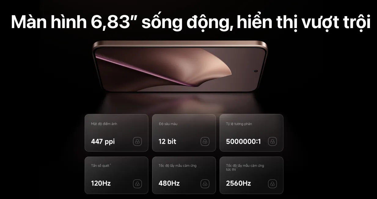 Độ sáng tối đa 3200 nits, 447ppi, 68 tỷ màu, DCI-P3, HDR10+, Dolby Vision®, DC dimming, TÜV Rheinland