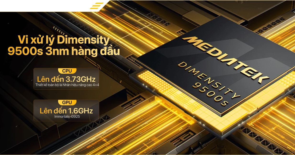 | Loại CPU | 1 × Cortex-X925 (tối đa 3.73GHz) + 3 × Cortex-X4 (tối đa 3.3GHz) + 4 × Cortex-A720 (tối đa 2.4GHz) |