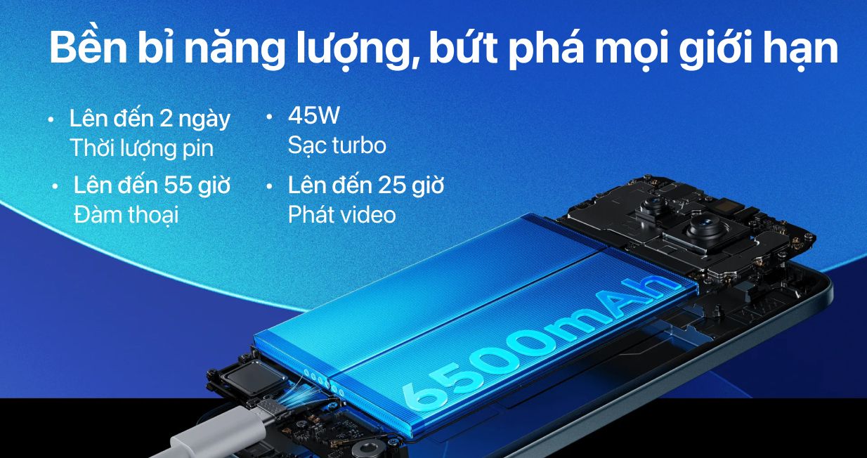 Pin 6.500 mAh, sạc nhanh 45W