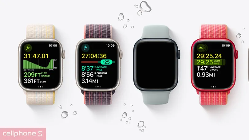 Bên cạnh khả năng theo dõi các chỉ số sức khỏe thông minh, Apple Watch thế hệ thứ 8 này còn hỗ trợ theo dõi hàng chục bài tập luyện thể thao khác nhau từ các môn tập luyện tại chỗ như ngồi xổm, xoay người đến các môn thể thảo di chuyển như đi bộ, chạy, thiền,….