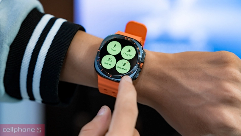 Samsung Galaxy Watch Ultra là phiên bản đỉnh cao trong dòng Galaxy Watch, hướng đến khách hàng đam mê thể thao, khám phá và mong muốn sự bền bỉ vượt trội. Chiếc đồng hồ này sở hữu thiết kế hầm hố, với khung titanium chắc chắn và mặt kính sapphire, mang đến độ bền ấn tượng ngay cả trong điều kiện khắc nghiệt. Galaxy Watch Ultra cũng được trang bị GPS chính xác hơn và hỗ trợ hàng loạt chế độ luyện tập chuyên sâu.