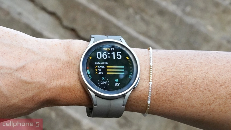 Đồng hồ Samsung Galaxy Watch 5 Pro hướng tới những người yêu thích thể thao và phiêu lưu với lớp vỏ titanium bền bỉ và mặt kính sapphire cứng cáp. Điểm đặc biệt của Watch 5 Pro là viên pin dung lượng lớn 590mAh, cho hoạt động bền bỉ suốt khoảng 80 giờ, đồng thời cho phép sạc 45% chỉ với 30 phút. Thiết bị cũng hỗ trợ theo dõi sức khỏe toàn diện và định vị GPS tiên tiến, giúp theo dõi lộ trình chính xác khi tập luyện ngoài trời.