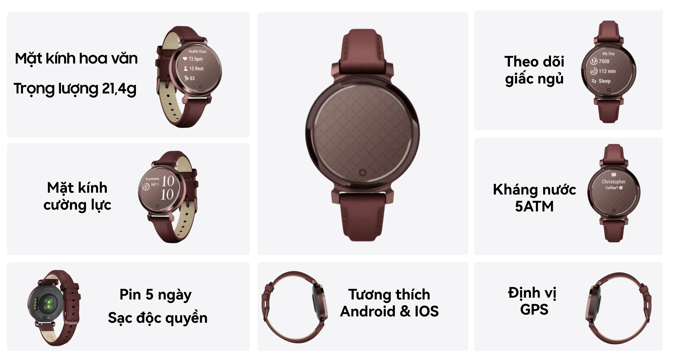 | Tiện ích sức khoẻ | Chế độ luyện tập, Theo dõi giấc ngủ, Đo nhịp tim, Đo lượng oxy trong máu, Đếm bước chân, Tính calo tiêu thụ, Tính quãng đường chạy, Đo mức độ stress, Tính tuổi thể chất, Theo dõi chu kỳ |