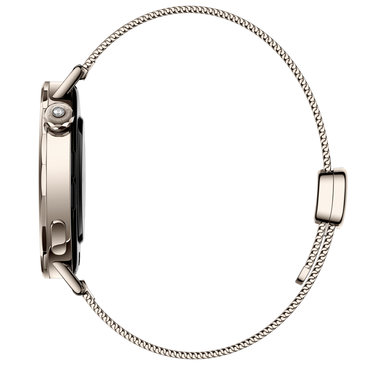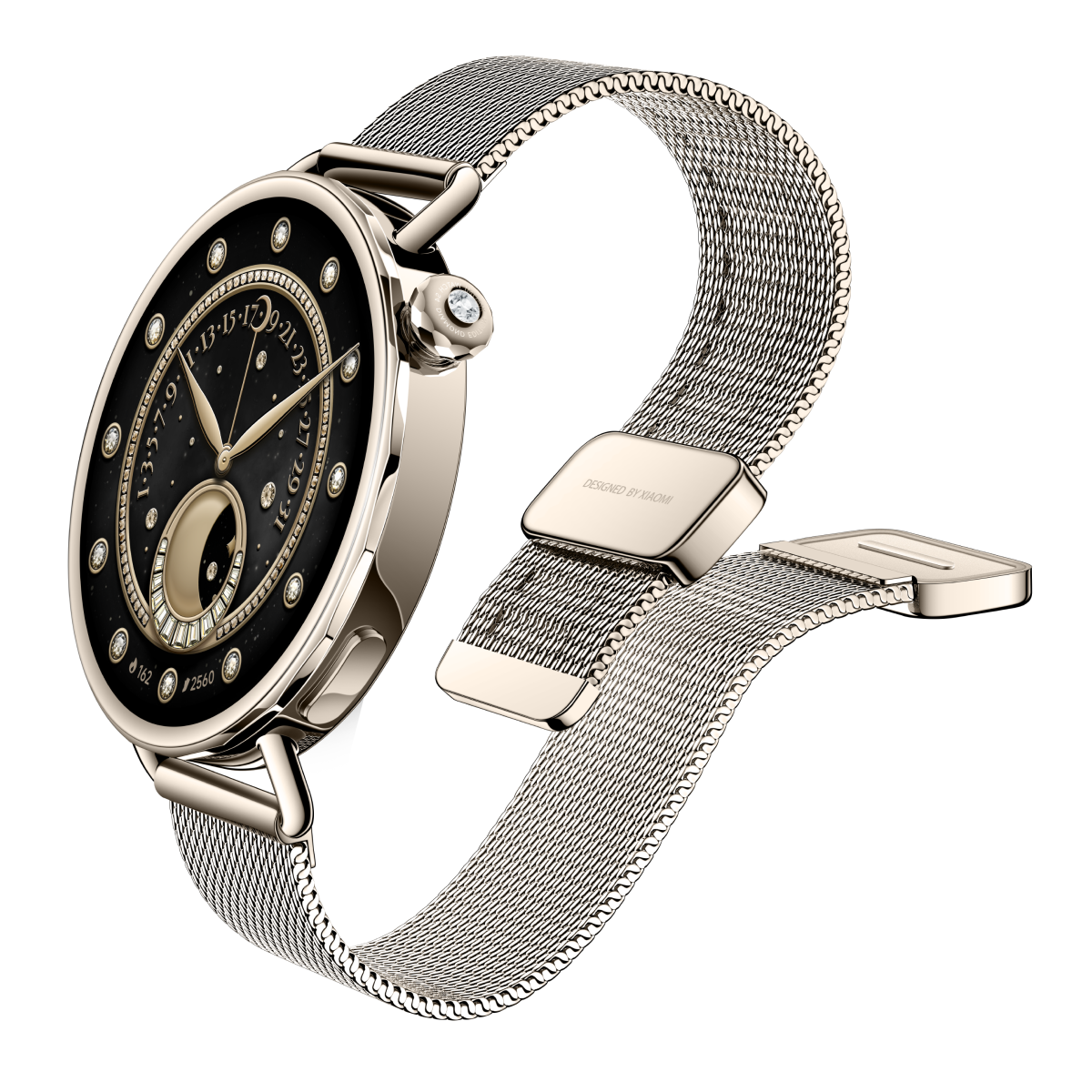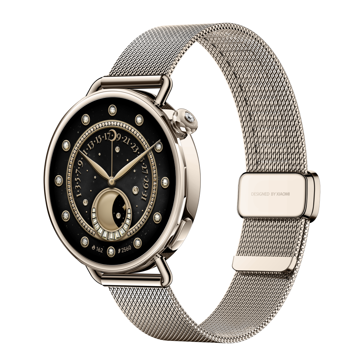 Chất liệu thép không gỉ màu vàng kết hợp chi tiết nút xoay gắn kim cương nhân tạo giúp thiết bị tăng tính thẩm mỹ và thu hút ánh nhìn. Trọng lượng Xiaomi Watch S4 chỉ 32g (không bao gồm dây đeo) đảm bảo sự thoải mái trong suốt quá trình sử dụng.