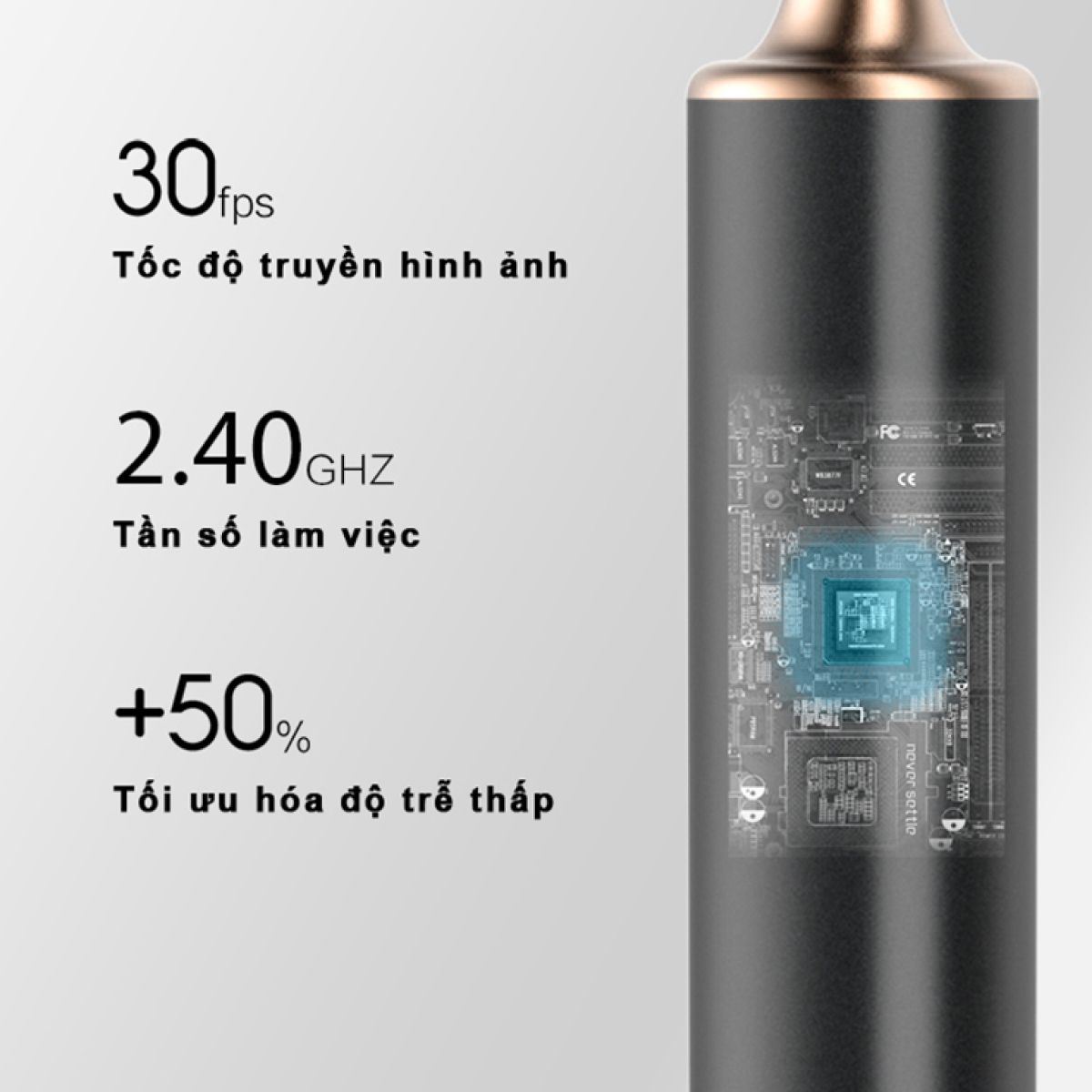 Dụng cụ được trang bị chip WiFi tốc độ cao, cho phép kết nối trực tiếp với điện thoại thông minh mà không cần dây cáp. Công nghệ WiFi 2.4GHz giúp dụng cụ lấy ráy tai Bebird T15 giảm độ trễ, mang lại hình ảnh truyền tải mượt mà và ổn định trong thời gian thực.
