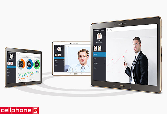 Galaxy Tab S 10.5 LTE được trang bị màn hình 10.5 inch, độ phân giải lên đến 1600 x 2560 pixels cho khả năng hiển thị hình ảnh vô cùng sắc nét.
