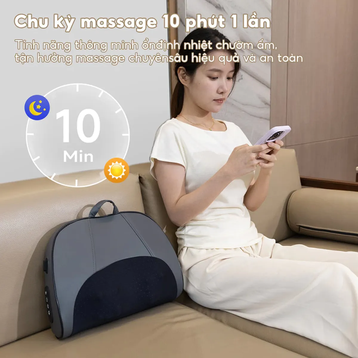 Cảm biến nhiệt hoạt động tự động, duy trì độ ấm ổn định trong suốt chu kỳ massage, tránh quá nóng. Khi kết hợp cùng massage 3D, gối tạo cảm giác thư thái, giúp cơ thể nhanh chóng phục hồi năng lượng sau ngày dài làm việc.