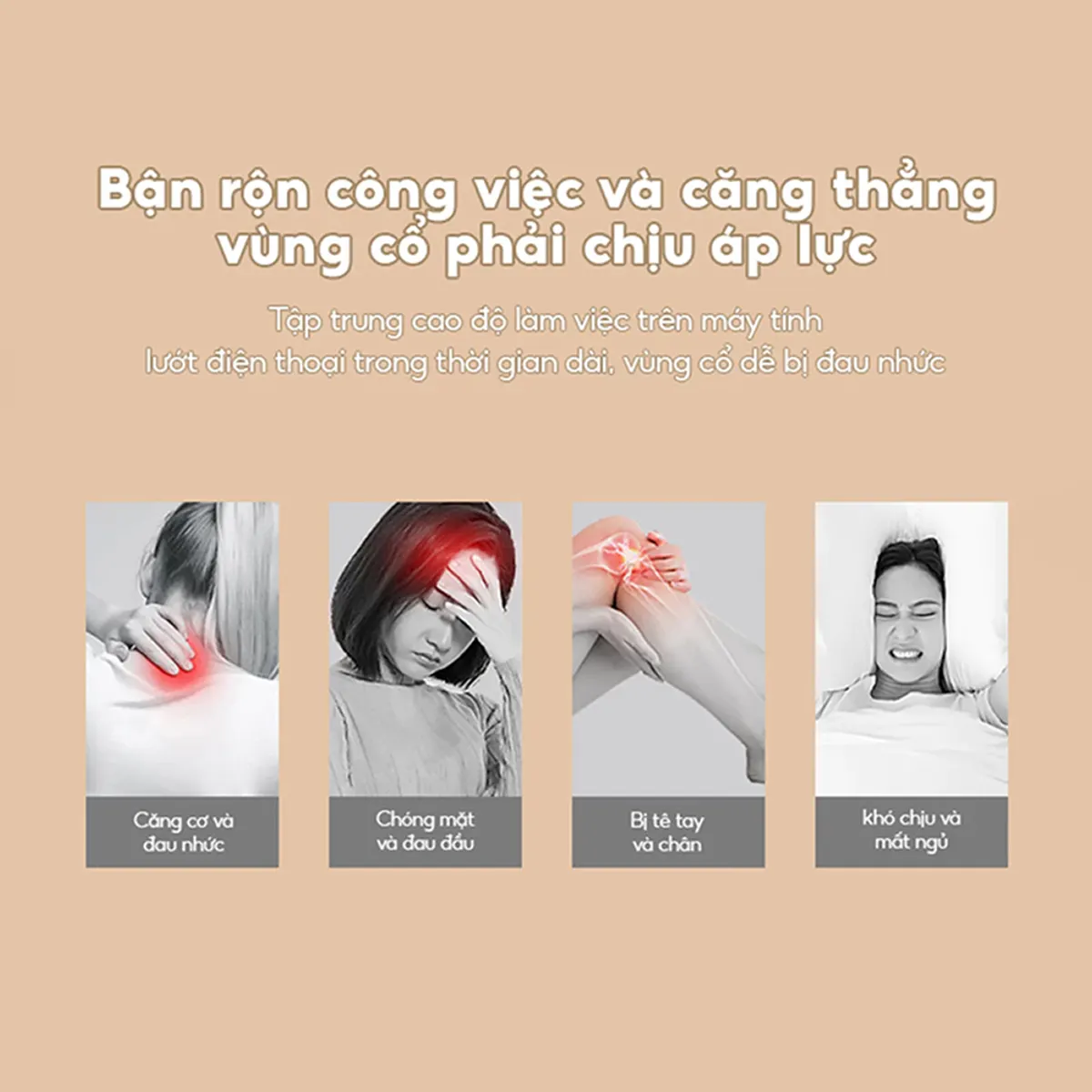 | Vùng massage | Đùi, vai, lưng, gáy, cổ, bụng, tay, bắp chân |