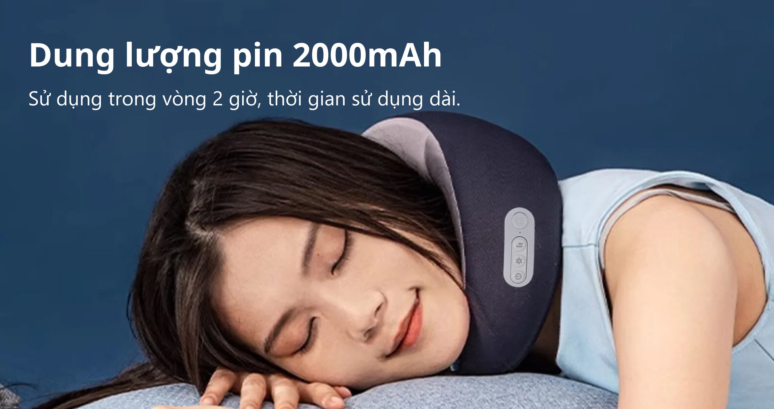 Sản phẩm tích hợp viên pin dung lượng 2000mAh cho thời gian sử dụng thực tế khoảng 2 giờ sau mỗi lần sạc đầy. Gối sử dụng cổng sạc USB phổ biến, có thể nạp pin dễ dàng bằng sạc điện thoại, pin dự phòng hoặc kết nối với máy tính.