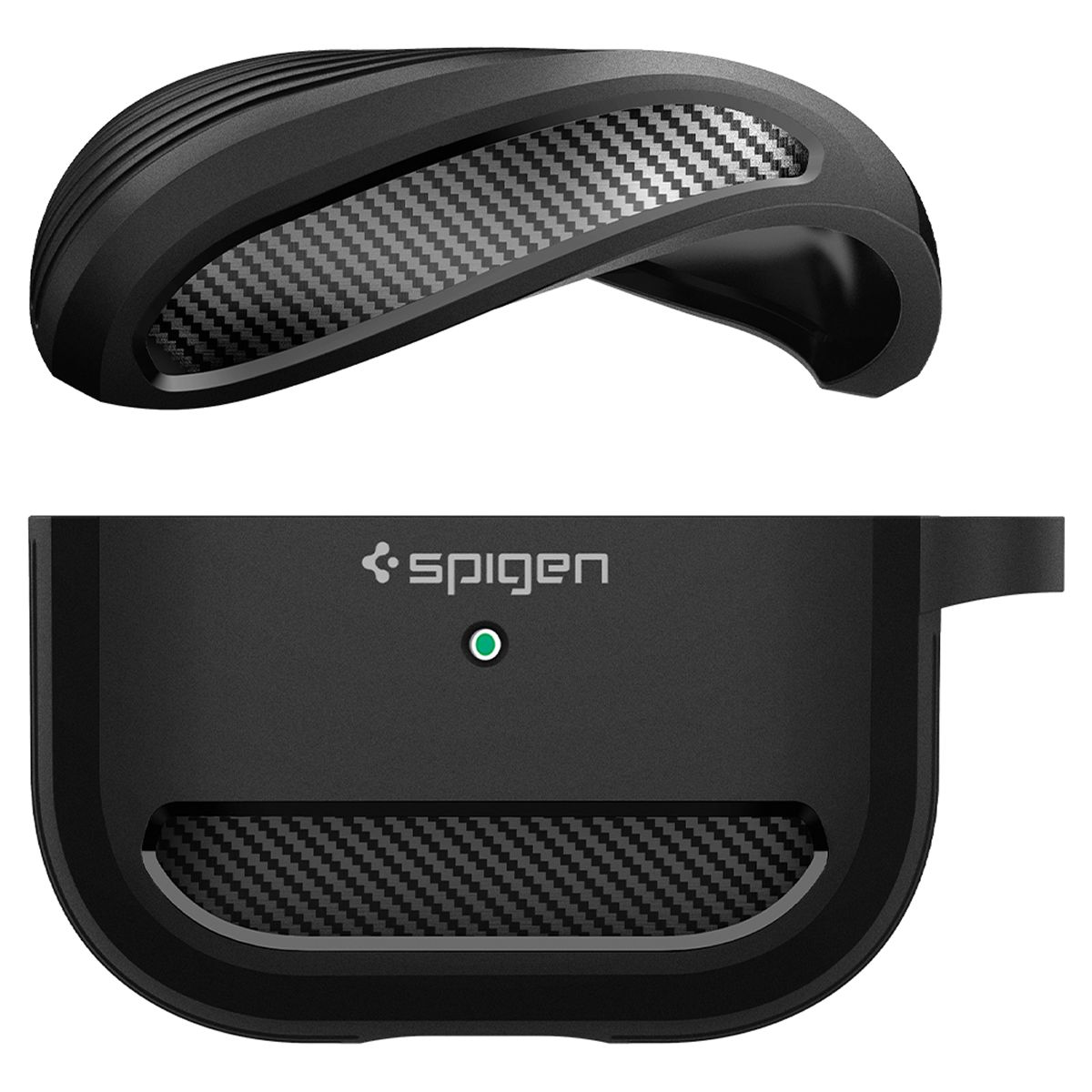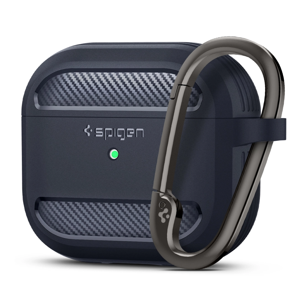 Hộp đựng tai nghe Apple Airpods 3 Spigen Rugged Armor Charcoal DRS được sản xuất từ vật liệu Hybrid Polymer với độ hoàn thiện cao dành cho Airpods 3. Sản phẩm hỗ trợ sạc không dây và đi kèm móc treo kim loại tiện lợi. Bề mặt hoàn thiện đen mờ với họa tiết sợi carbon mang phong cách công nghệ hiện đại.