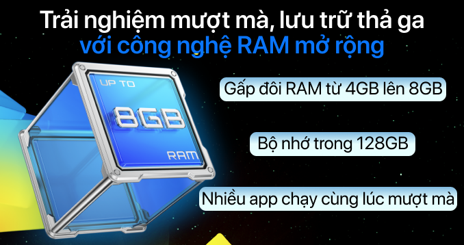 | Dung lượng RAM | 8GB + Mở rộng 8GB |