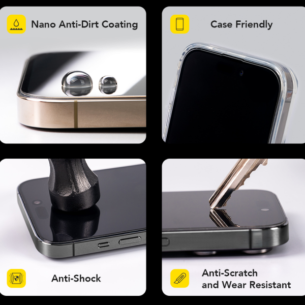 Kính cường lực được trang bị lớp phủ nano tiên tiến, giúp chống bám bụi và nước hiệu quả, giữ bề mặt luôn sạch sẽ và sáng bóng. Công nghệ này còn giúp người dùng dễ dàng lau chùi, đồng thời hạn chế vết bẩn và dấu vân tay xuất hiện trong quá trình sử dụng.
