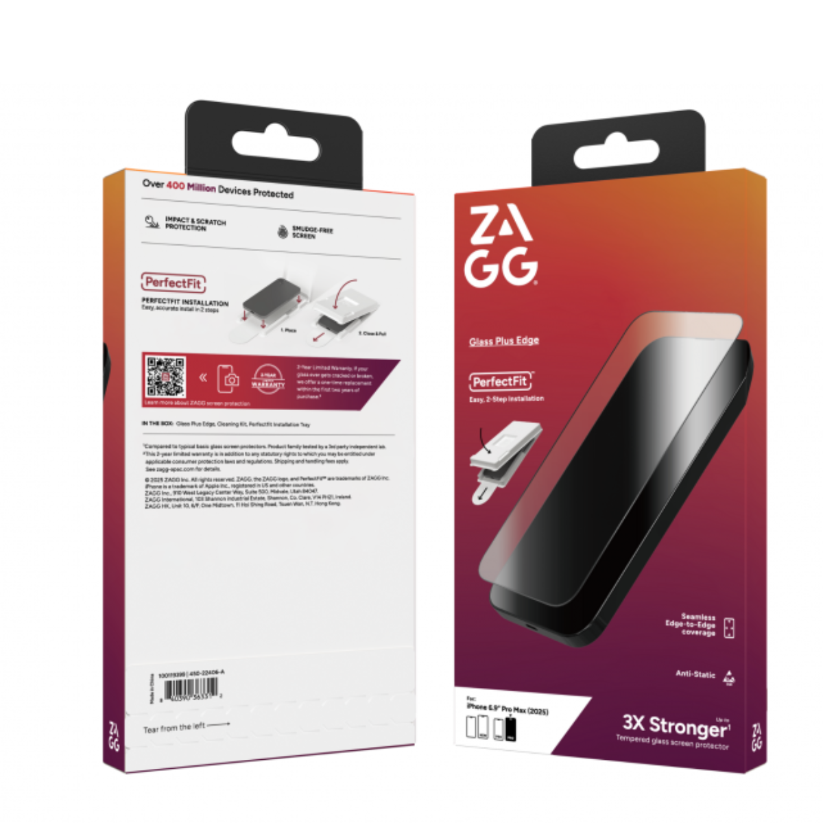 Zagg ứng dụng công nghệ tiên tiến để tạo nên lớp kính cường lực iPhone Air Zagg Plus Edge Full có khay hỗ trợ dán có độ cứng vượt trội. So với việc để màn hình trần, kính này tăng khả năng chịu lực lên gấp 3 lần, bảo vệ màn hình iPhone Air tránh được rủi ro nứt vỡ khi rơi từ độ cao thông thường.