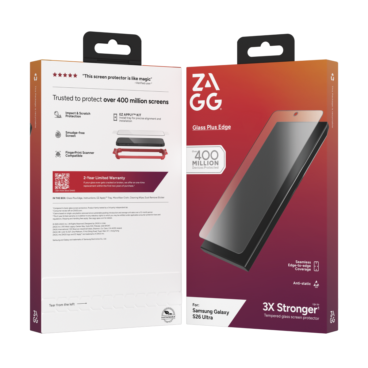 Dán kính cường lực màn hình Samsung Galaxy S26 Ultra Zagg Glass Plus Egde Full viền đen cao cấp (có khay hỗ trợ dán)