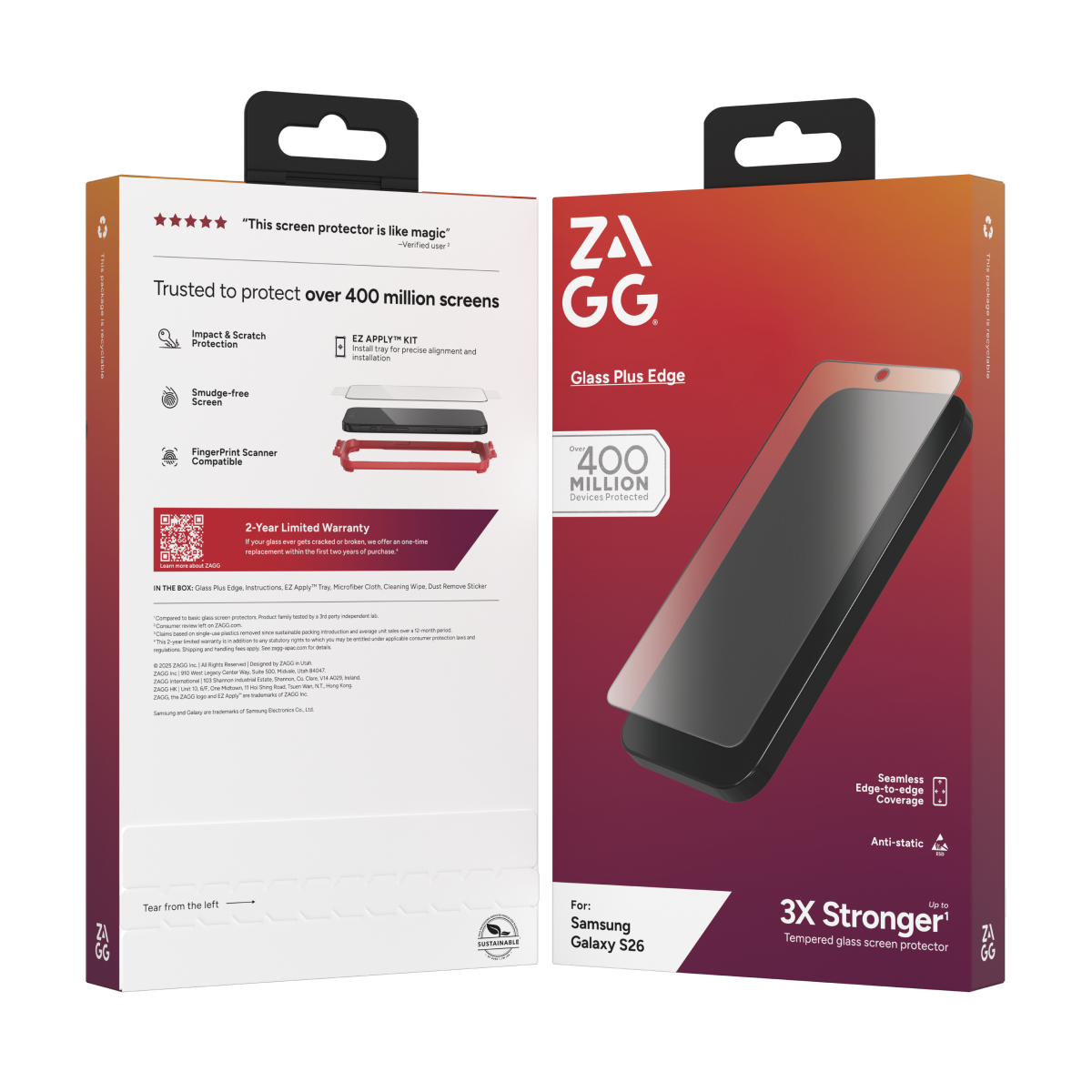 Dán kính cường lực màn hình Samsung Galaxy S26 Zagg Glass Plus Egde Full viền đen cao cấp (có khay hỗ trợ dán)