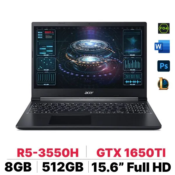 Laptop Acer Gaming Aspire 7 A715-41G-R282 mang trong mình hiệu năng vượt trội với thế hệ vi xử lý AMD Ryzen 5-3550H giúp các tác vụ luôn được thực thi nhanh chóng và mượt mà.