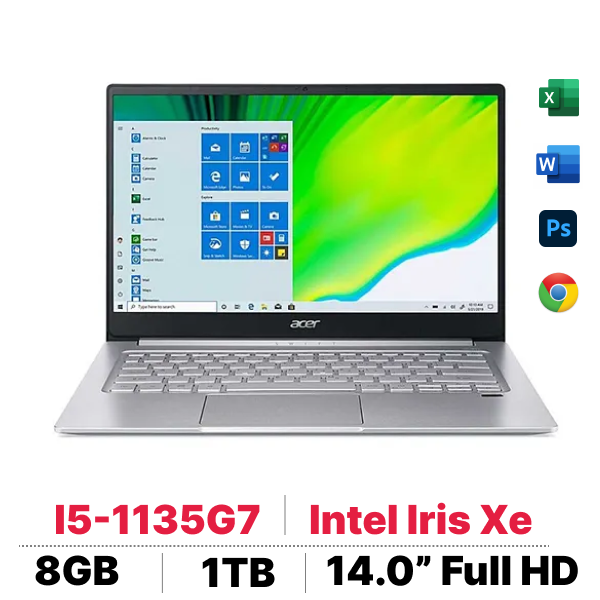 Cùng khám phá thêm dòng Laptop Acer Swift 3 SF314-59-599U NX.A0MSV.001 có cấu hình mạnh mẽ, tốc độ xử lý nhanh chóng. Luôn góp phần mang đến các trải nghiệm mượt mà.