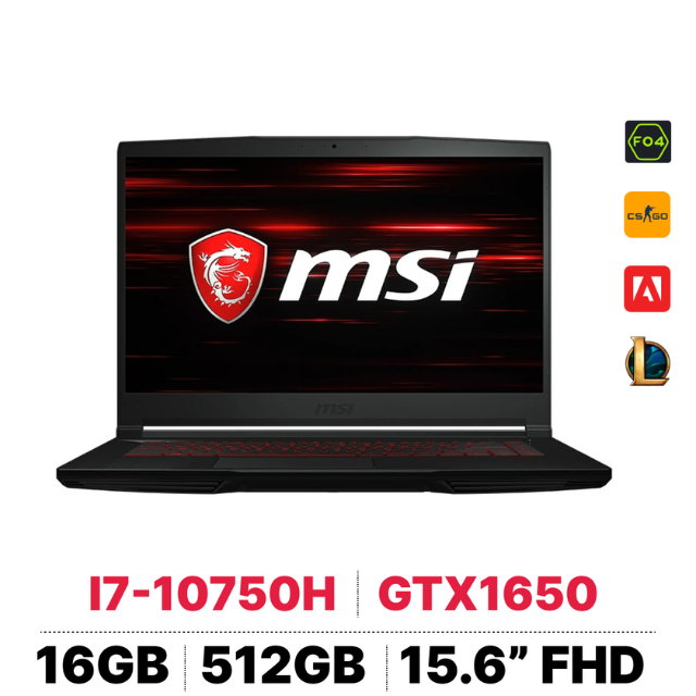I7-10750H/16GB/512GB PCIE/VGA 4GB GTX1650/15.6 FHD/WIN10/ĐEN