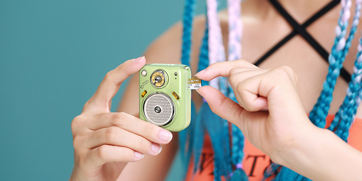 Sản phẩm này hiện ra mắt với phiên bản màu hồng và màu xanh bắt mắt cùng lớp sơn bóng bẩy, bền bỉ và sang trọng trên từng đường nét của thiết bị. Với trọng lượng chỉ 103g và kích thước siêu nhỏ, người dùng có thể dễ dàng mang theo chiếc loa này bên mình như một món phụ kiện trang trí thời trang đầy cá tính.