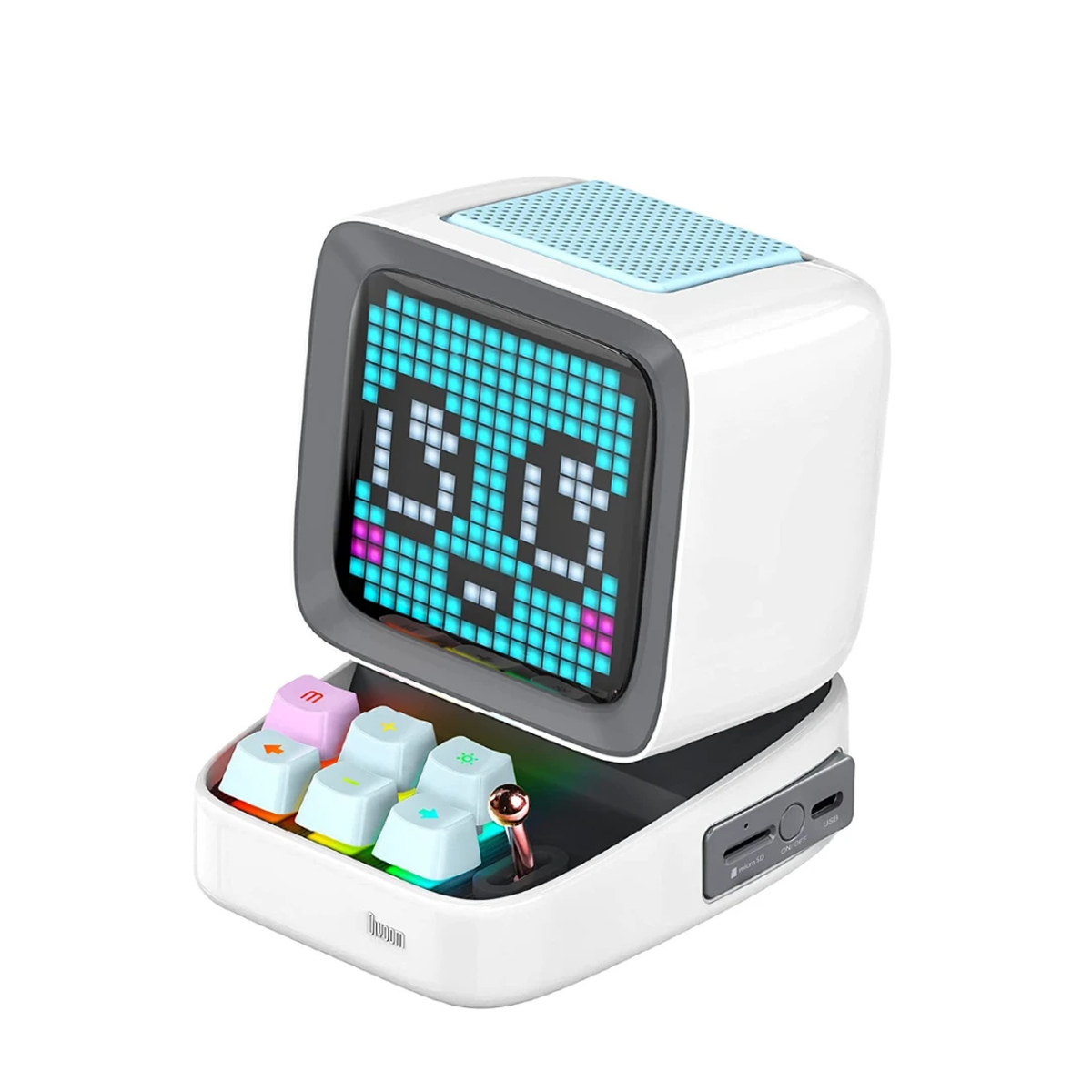 Loa Bluetooth Divoom Ditoo Plus sở hữu công suất 10W kết hợp cùng bộ xử lý âm thanh DSP và màng loa 45mm mang lại trải nghiệm nghe nhạc sống động. Thiết kế retro kết hợp bàn phím cơ 9 màu và hiệu ứng đèn nền tạo nên vẻ ngoài ấn tượng. Với viên pin 3000mAh, loa có thể phát nhạc trong khoảng 8 giờ.