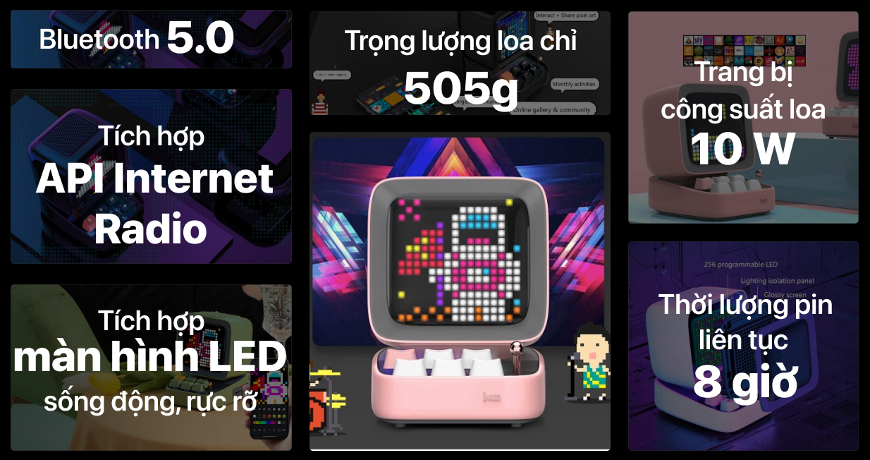 Mẫu loa Divoom này mang lại sự kết hợp thú vị giữa ngoại hình của một chiếc máy tính mini và các công nghệ âm thanh hiện đại. Người dùng có cơ hội khám phá nhiều tính năng giải trí đa dạng ẩn giấu bên trong thân hình nhỏ gọn của sản phẩm.