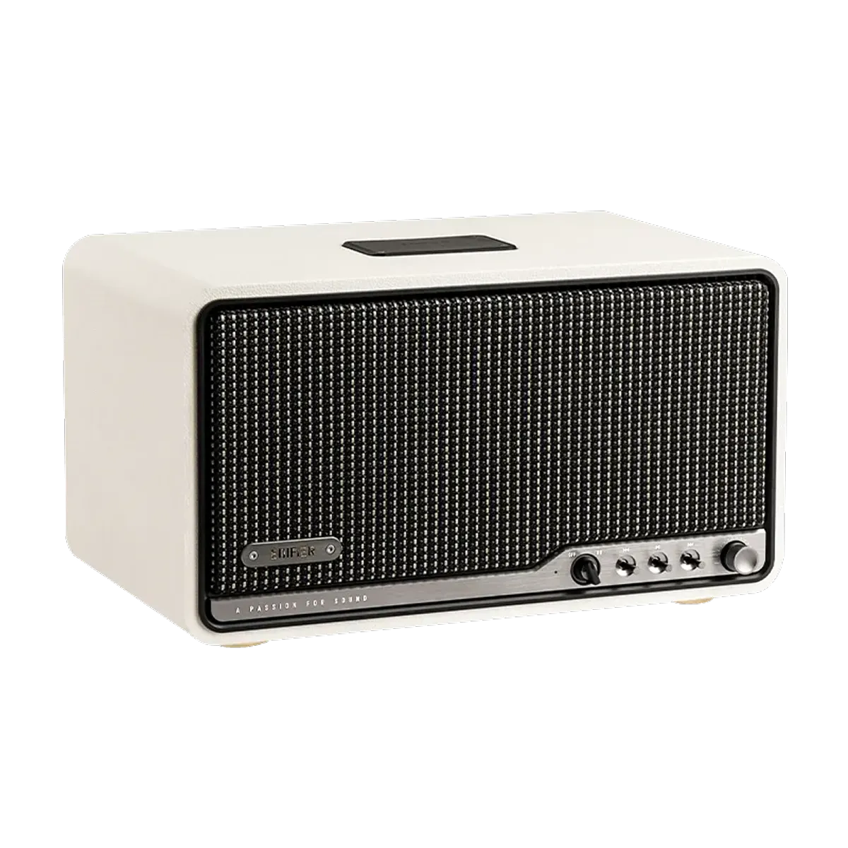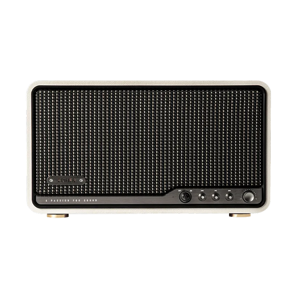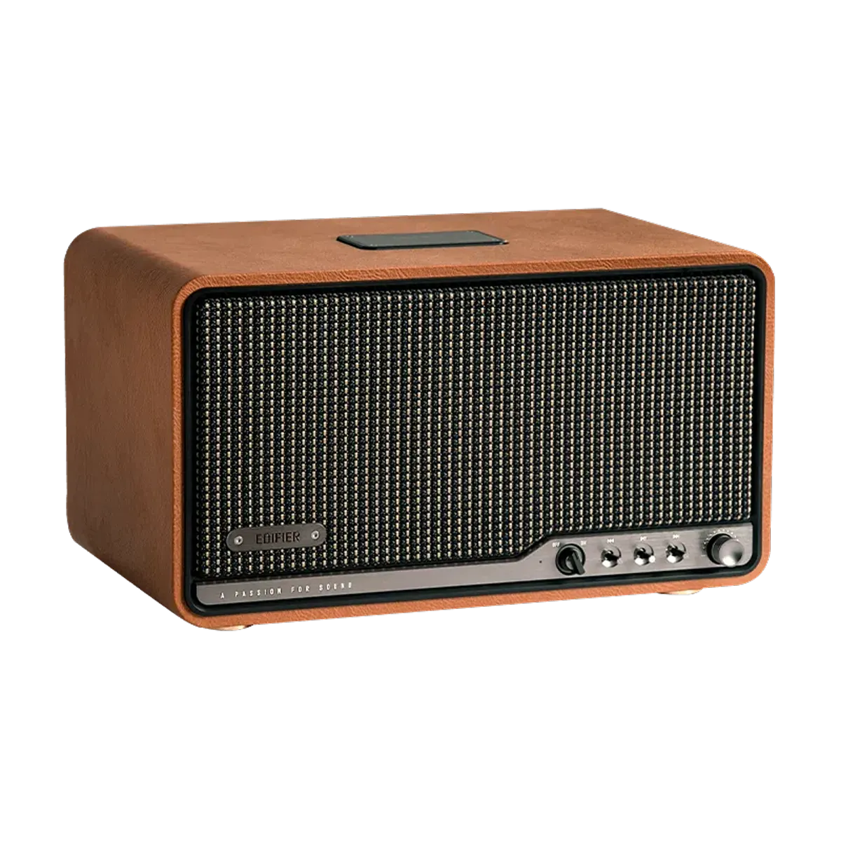 Sản phẩm gây ấn tượng nhờ sự kết hợp hài hòa giữa phong cách cổ điển và hiện đại, tạo nên nét sang trọng trong từng chi tiết. Thiết kế loa dạng tủ gỗ thủ công kết hợp lưới loa bện tinh xảo cùng núm điều chỉnh kim loại mang đến vẻ ngoài tinh tế.